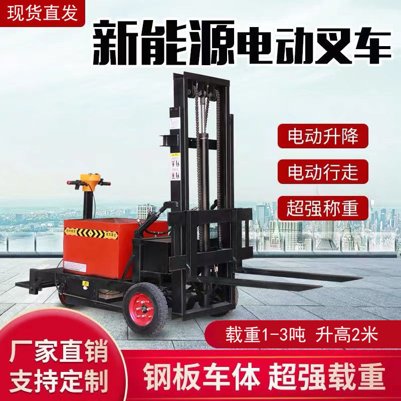 温宿县小型电动叉车1吨站驾式2吨液压升高铲车全自动仓储堆高车